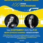 Τρίτη 30 Σεπτεμβρίου Συναυλία Μαρίας Φαραντούρη – Βασίλη Λέκκα και τιμητικές απονομές στον Πολιτιστικό Όμιλο Πεντέλης Είναι ιδιαίτερη τιμή και χαρά να σας προσκαλέσουμε στο Επετειακό Αφιέρωμα για τα 100 χρόνια από τη γέννηση του μεγάλου Έλληνα Μίκη Θεοδωράκη,με τη συμμετοχή δύο εμβληματικών συνοδοιπόρων του, της κυρίας Μαρίας Φαραντούρη και του κυρίου Βασίλη Λέκκα. Η εκδήλωση θα πραγματοποιηθεί στο […]